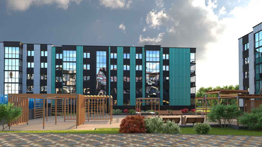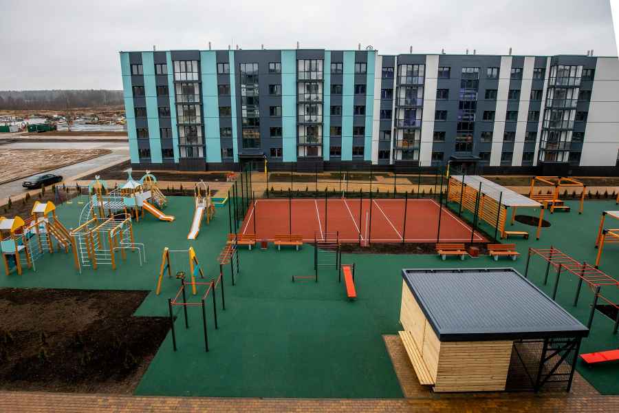 Многоквартирный жилой дом в г.п. Мачулищи состоит из 2-х подъездов с квартирами-студиями, 1-, 2- и 3-комнатными квартирами. Всего в доме запроектировано 73 квартиры, в том числе 8 квартир-студий, 20 однокомнатных, 35 двухкомнатных и 10 трехкомнатных.