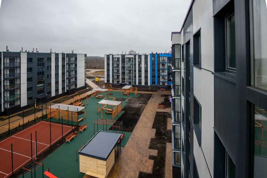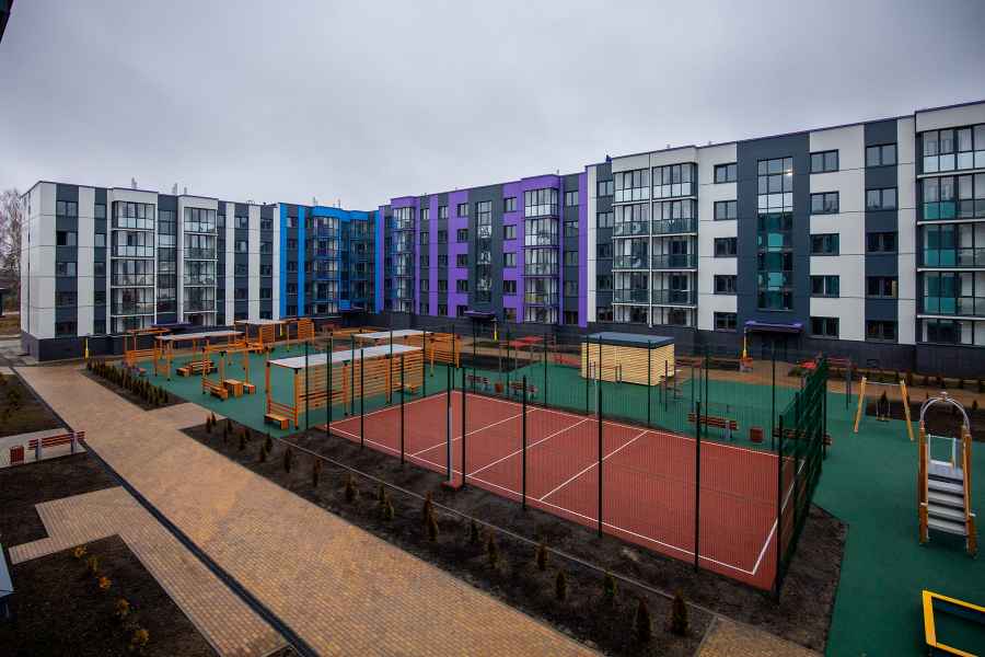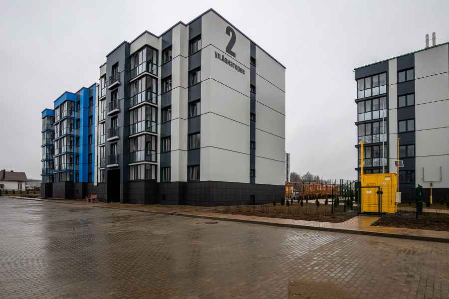 Многоквартирный жилой дом в г.п. Мачулищи состоит из 4-х подъездов с квартирами-студиями, 1-, 2- и 3-комнатными квартирами. Всего в доме запроектировано 127 квартиры, в том числе 13 квартир-студий, 49 однокомнатных, 50 двухкомнатных и 15 трехкомнатных.