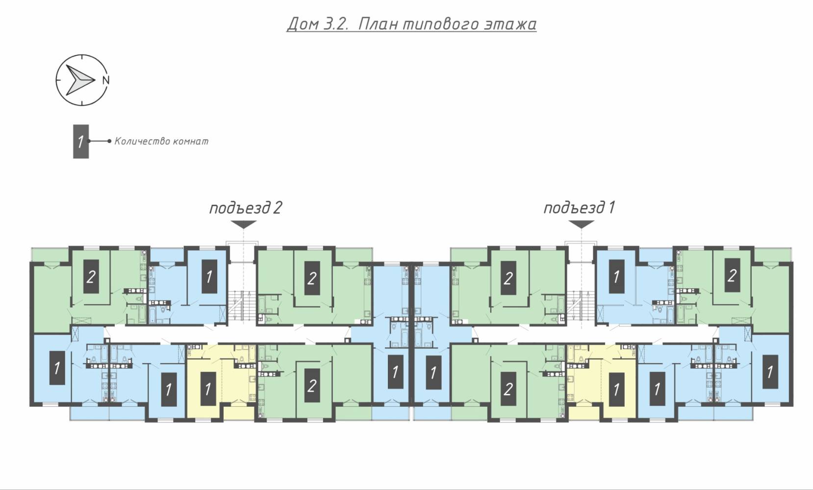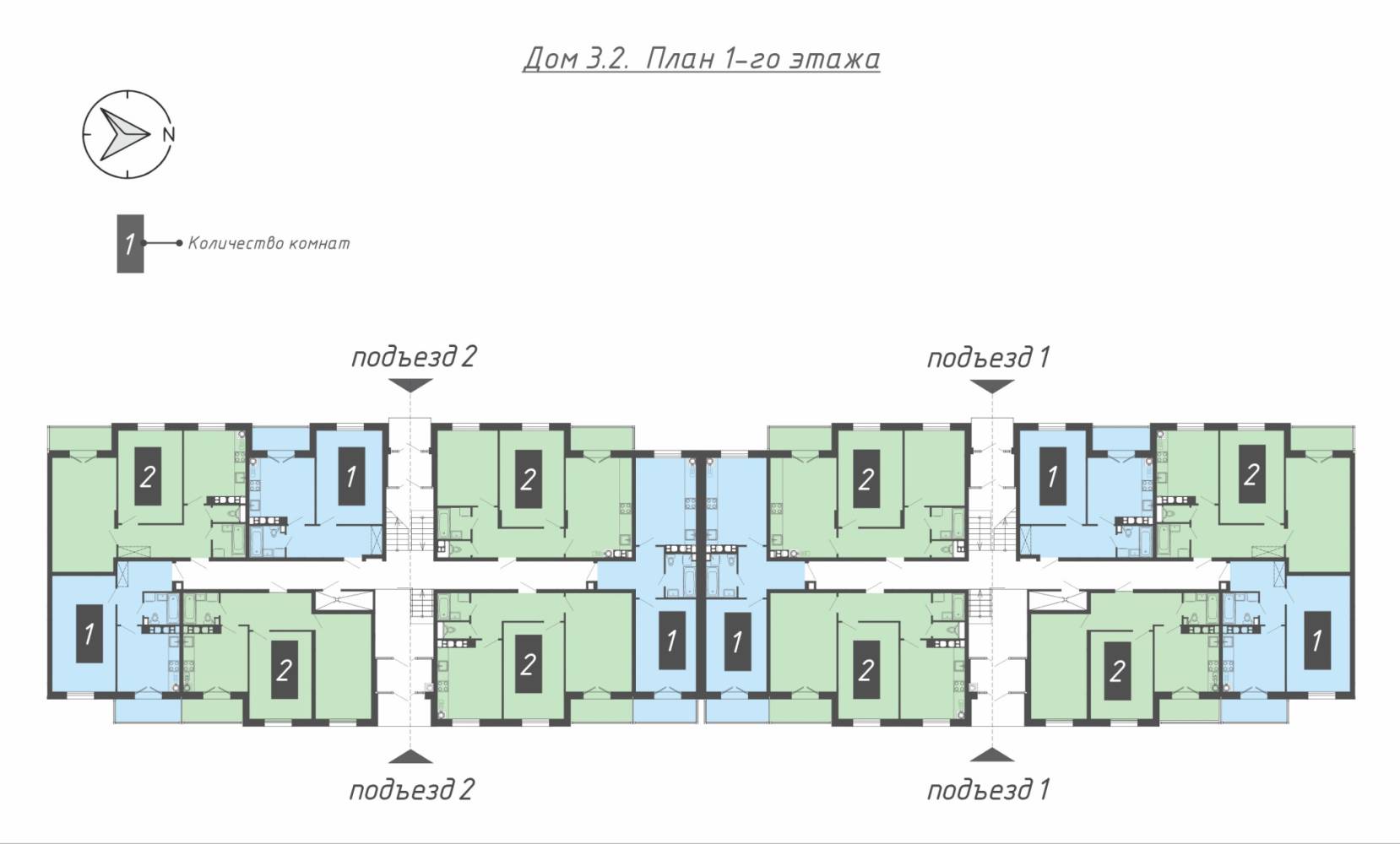 Многоквартирный жилой дом 3.2 в 3-й очереди строительства в г.п. Мачулищи состоит из 2-х подъездов с 1-, 2- комнатными квартирами. Всего в доме запроектировано 78 квартир, в том числе 8 однокомнатных квартир с объединенным пространством, 38 однокомнатных квартир и 32 двухкомнатных квартиры.
