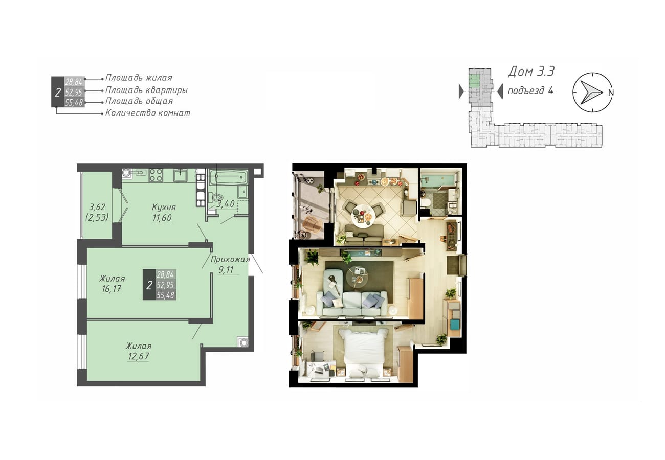 55.48 м2 площадь