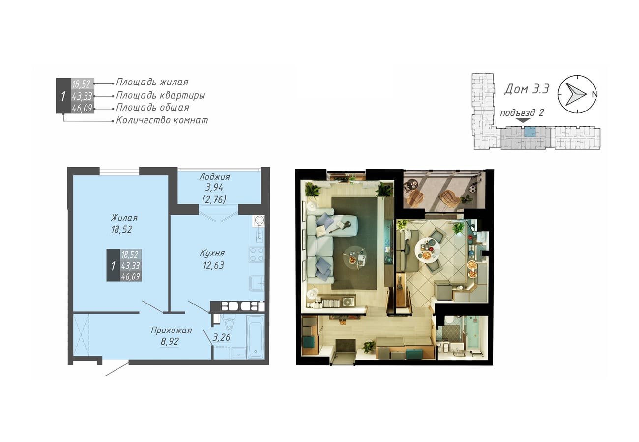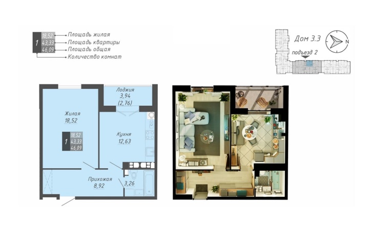 46.09 м2 площадь