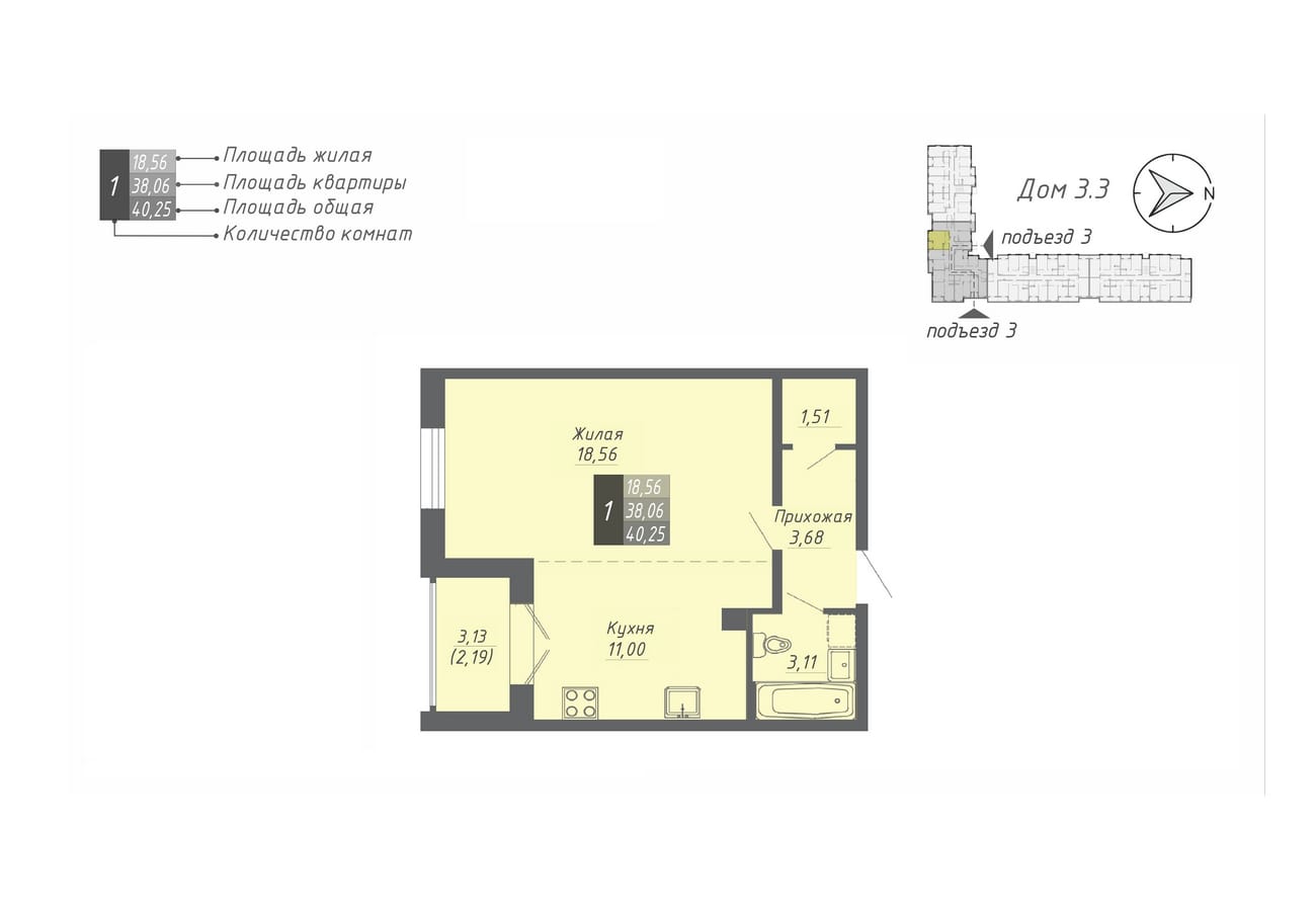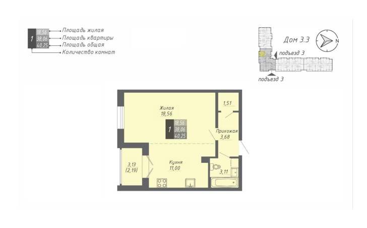40.25 м2 площадь