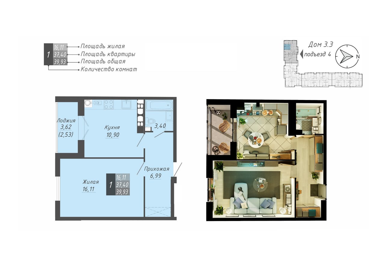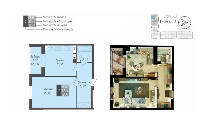 39.93 м2 площадь