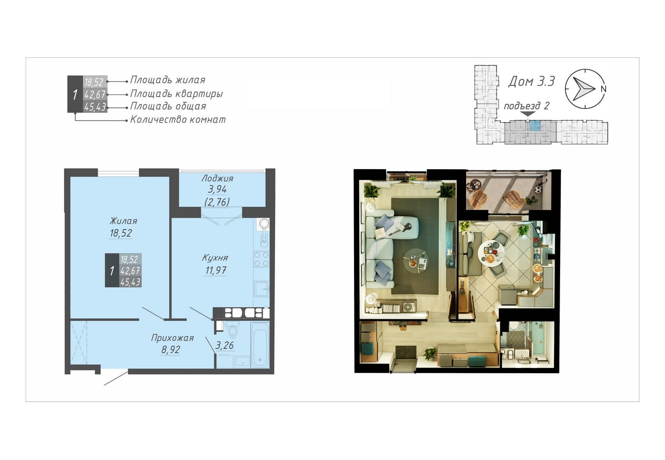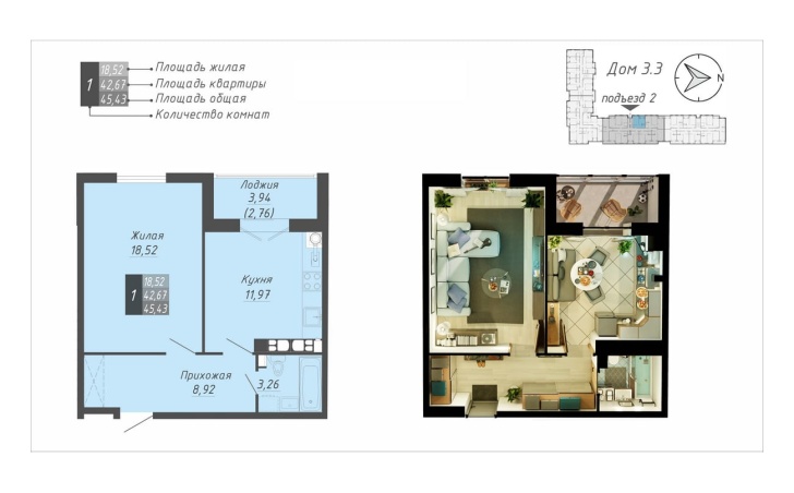 45.43 м2 площадь