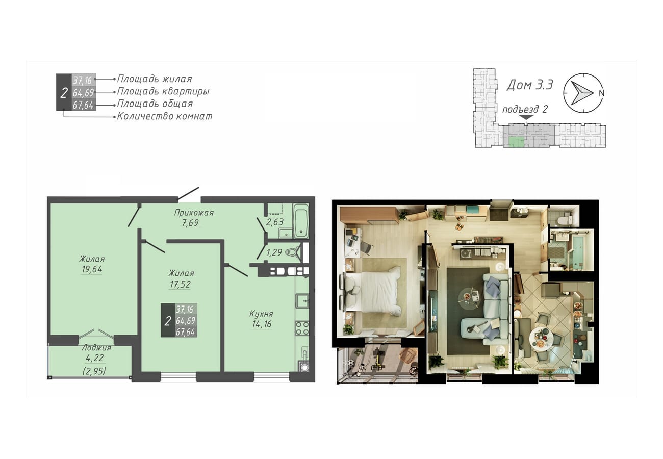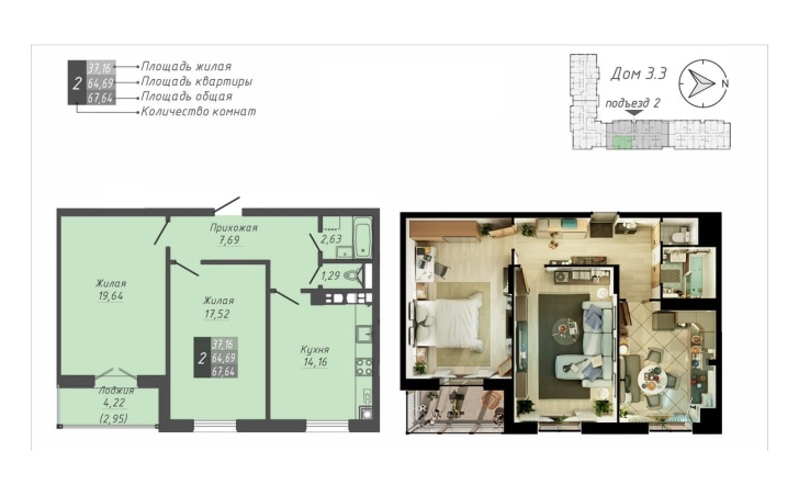 67.64 м2 площадь
