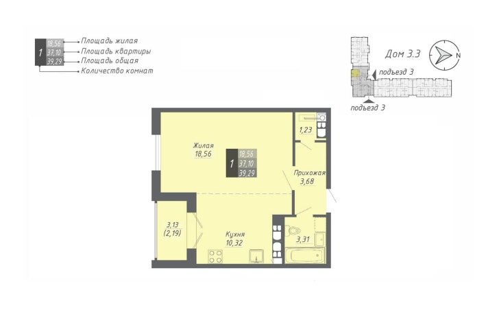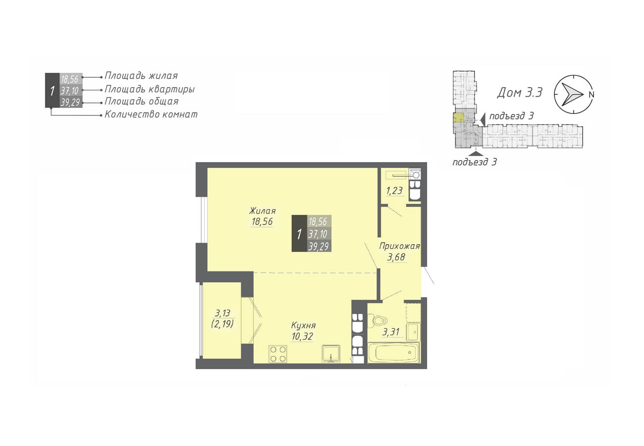 39.29 м2 площадь